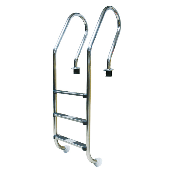 Лестницы для бассейна KUBBER выполнены из полированной нержавеющей стали AISI-304. Они оснащены антискользящими ступенями, которые снижают риск получения травмы при входе или выходе из бассейна. Лестницы крепятся к стене бассейна анкерными болтами и имеют резиновые упоры снизу для надежной фиксации. Они соответствуют международным стандартам качества. Для удобства монтажа во время заливки бортов лестницы оснащены закладными деталями, к которым крепятся зажимные анкеры, входящие в комплект поставки. При установке на уже готовый борт требуются дополнительные крепления.